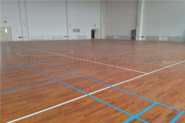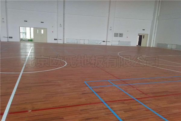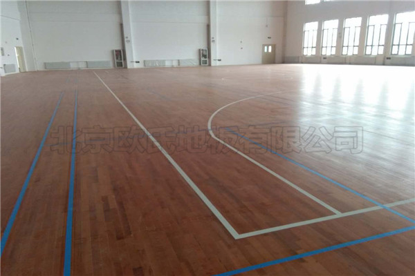 北京歐氏地板有限公司近期承接甘肅省金昌市第五中學新校區運動木地板鋪設工程,該項目負責人選擇的是單層龍骨結構45度斜鋪施工方案,并選用楓木獨條面板為*終面層,鋪設面積1600平米左右,現已鋪設完成結束驗收.籃球運動地板具有優良的承載性能,高吸震性能,抗變形性能的體育木地板系統,是采用高新技術抗菌功能,具有無毒、無味、防水、防滑、防霉菌,防潮、防塵、防腐、防靜電等特性,運動場館在鋪設的時候一定要根據所使用的材質不同和運動場館的要求合理施工.